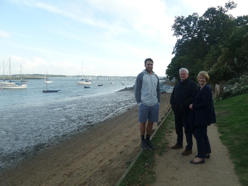 Andrew, Ian and Mary. A little bundled up against the cool October breeze, with the delightful bobbing boats at moarings behind.